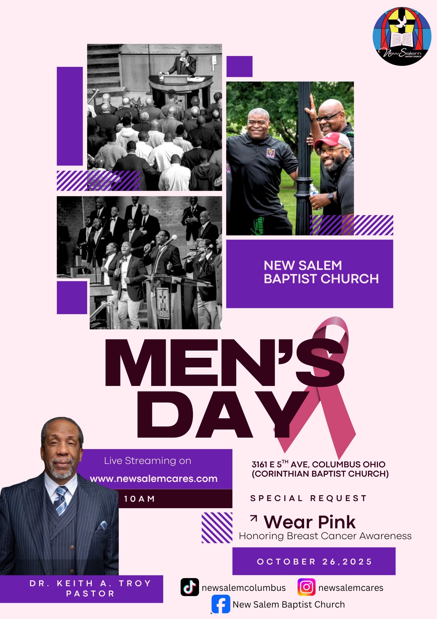 We invite you to join us on Sunday, October 26, for Men’s Day 2025. We’re asking everyone to wear pink as we worship together in honor of breast cancer awareness.