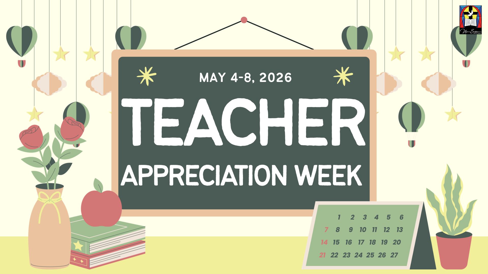Teacher Appreciation Week May 4-8. Blessings to all Educators, your Church Family Appreciates YOU!