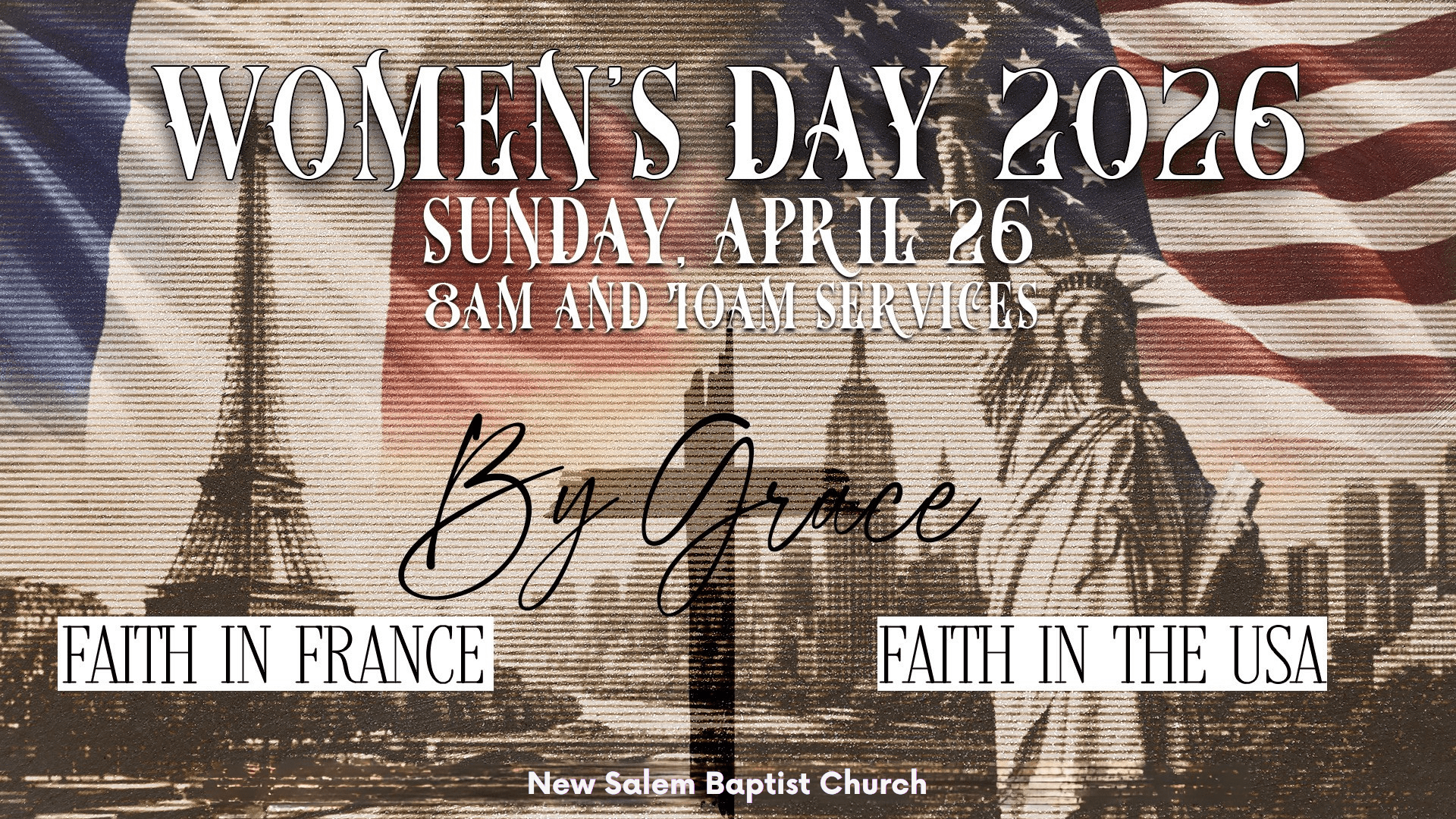 We will celebrate Women’s Day on Sunday, April 26 at both 8:00 a.m. and 10:00 a.m. services. The theme is “By Grace, Faith in the USA and Faith in France” taken from Ephesian 2:8. The color for the day is black where we will continue to stand against Gender Based Violence. For additional information please contact Min. Brenda Troy at btroy@newsalemcares.com